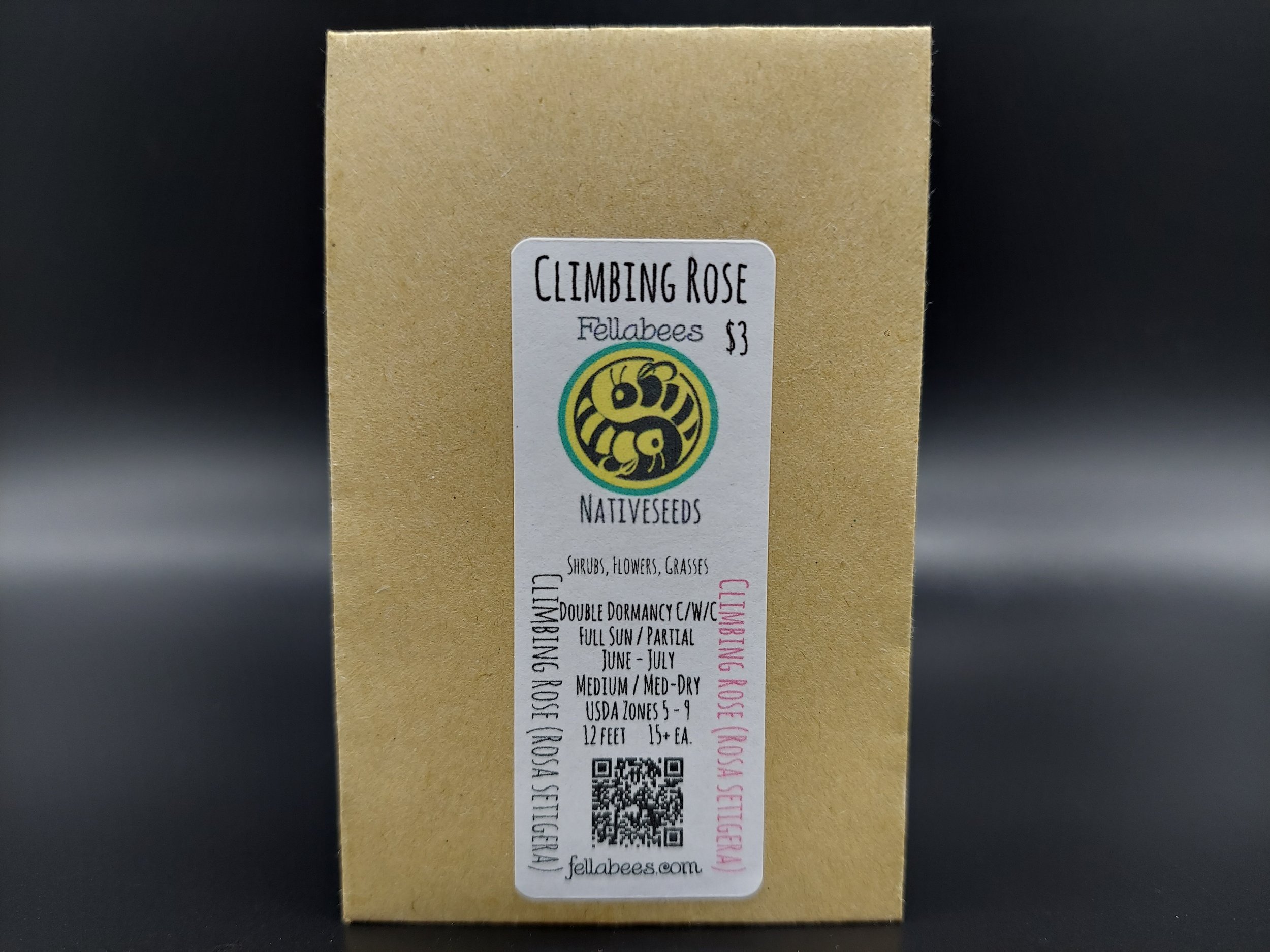 Climbing Rose has trailing or climbing slender stems that can grow up to 15 ft long. Given various circumstances, the plant can grow either as a vine or can alternately form a sprawling thicket. In open areas, the stems will arch downward after reaching a height of about 3 ft, and where they touch the ground, they will root. Which is an excellent opportunity to utilize this plant as trained fencing to deter deer and rabbits!