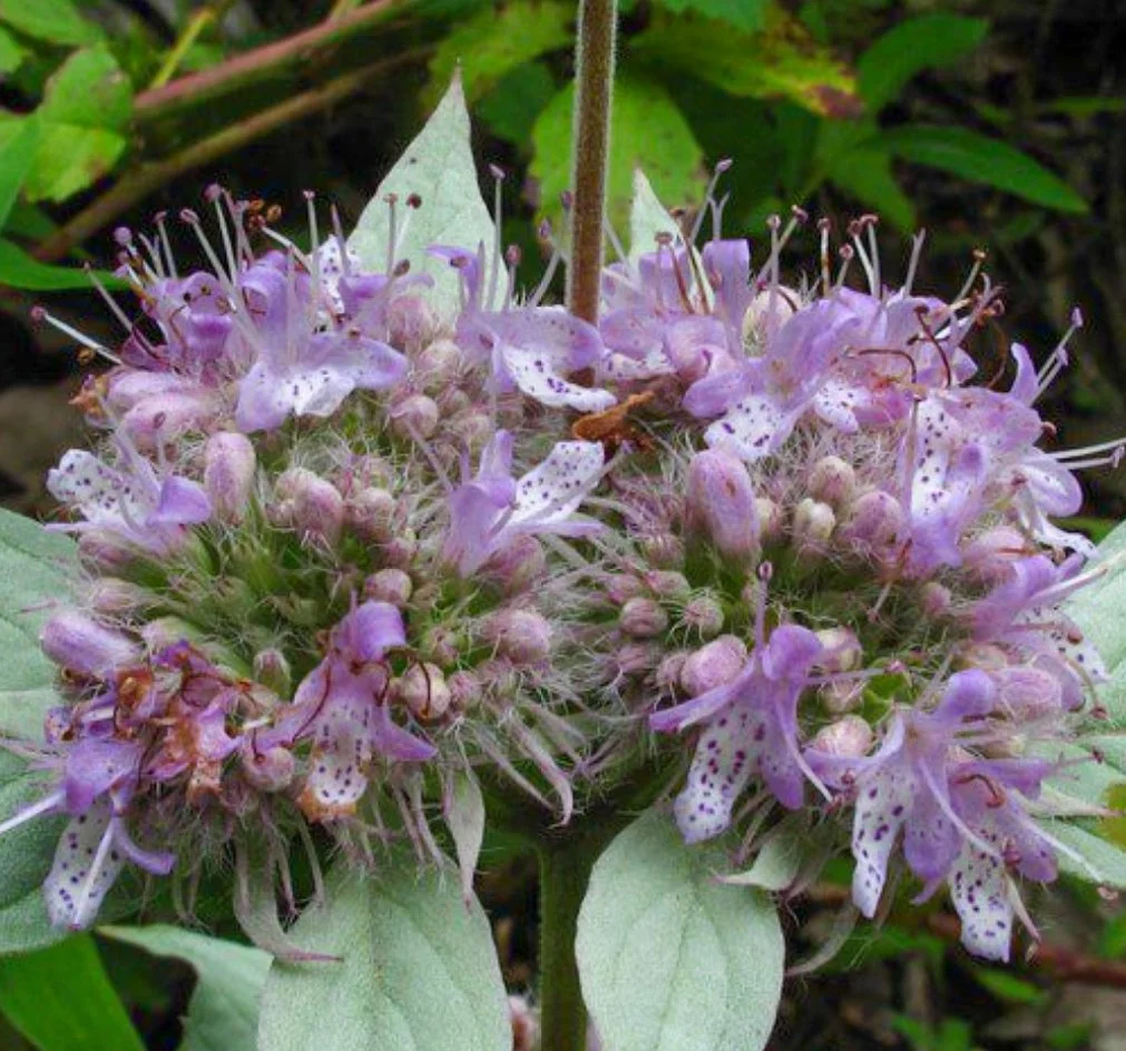 As is common with many members of the mint family, Hoary Mountain Mint is rich in volatile organic compounds (VOCs) that serve a dual purpose: attracting pollinators while simultaneously repelling herbivores. This natural defense mechanism makes the plant nearly impervious to browsing by rabbits and deer. Beyond its ecological benefits, the plant’s strong, clean, and vibrant aroma is highly appealing to humans as well. Historically, Native Peoples have utilized Hoary Mountain Mint for thousands of years, appreciating its aromatic qualities in teas and medicinal preparations. It has been traditionally used to relieve headaches when combined with Black Willow, to stop nosebleeds, and to enhance mental alertness, showcasing its versatility and value as a natural remedy.