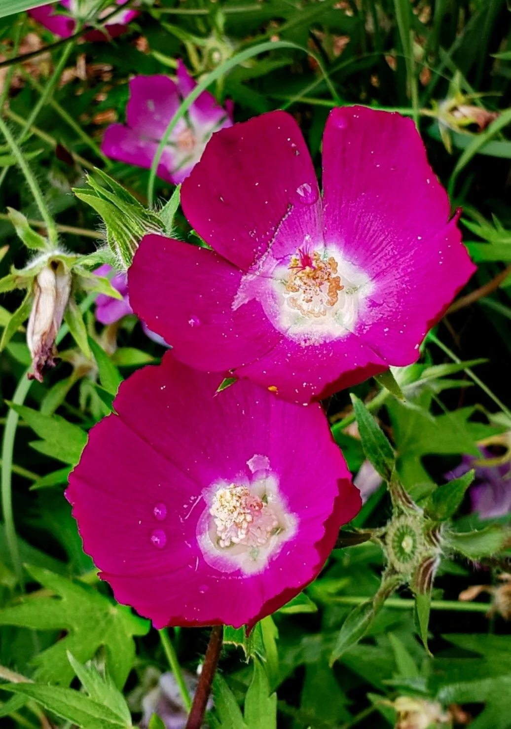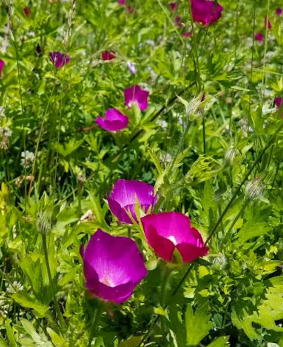 Purple Poppy Mallow is not impervious to deer or rabbit browsing, and it is a good idea to plant low growing natives like Nodding Onion, Mountain Mint, Green Spider Milkweed, or Butterfly Milkweed to minimize and deter browsing of plants sensitive to predation.